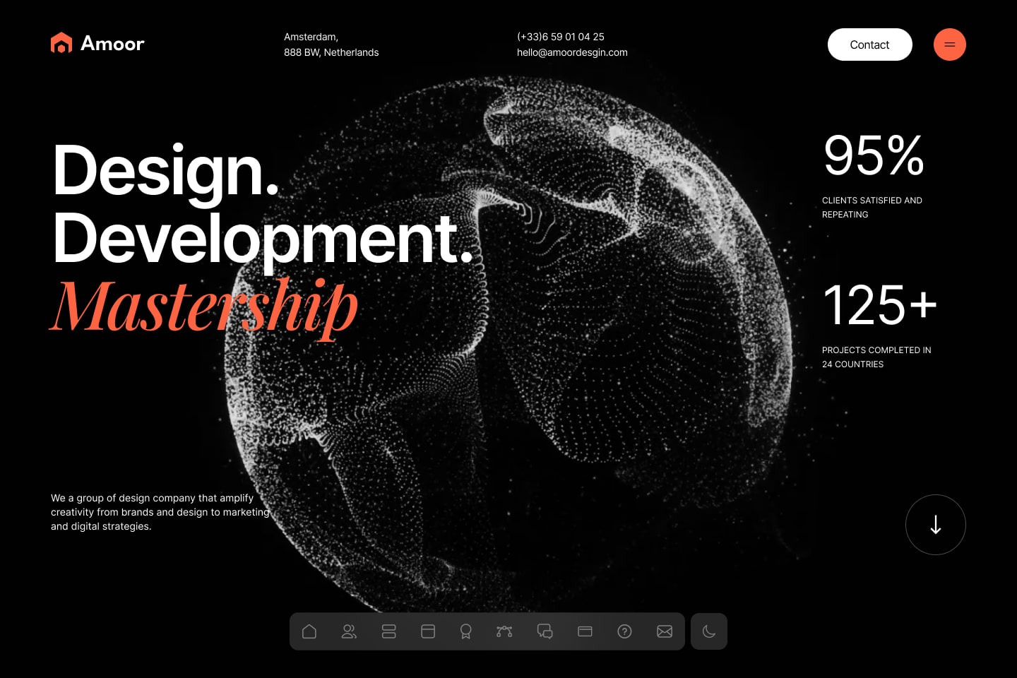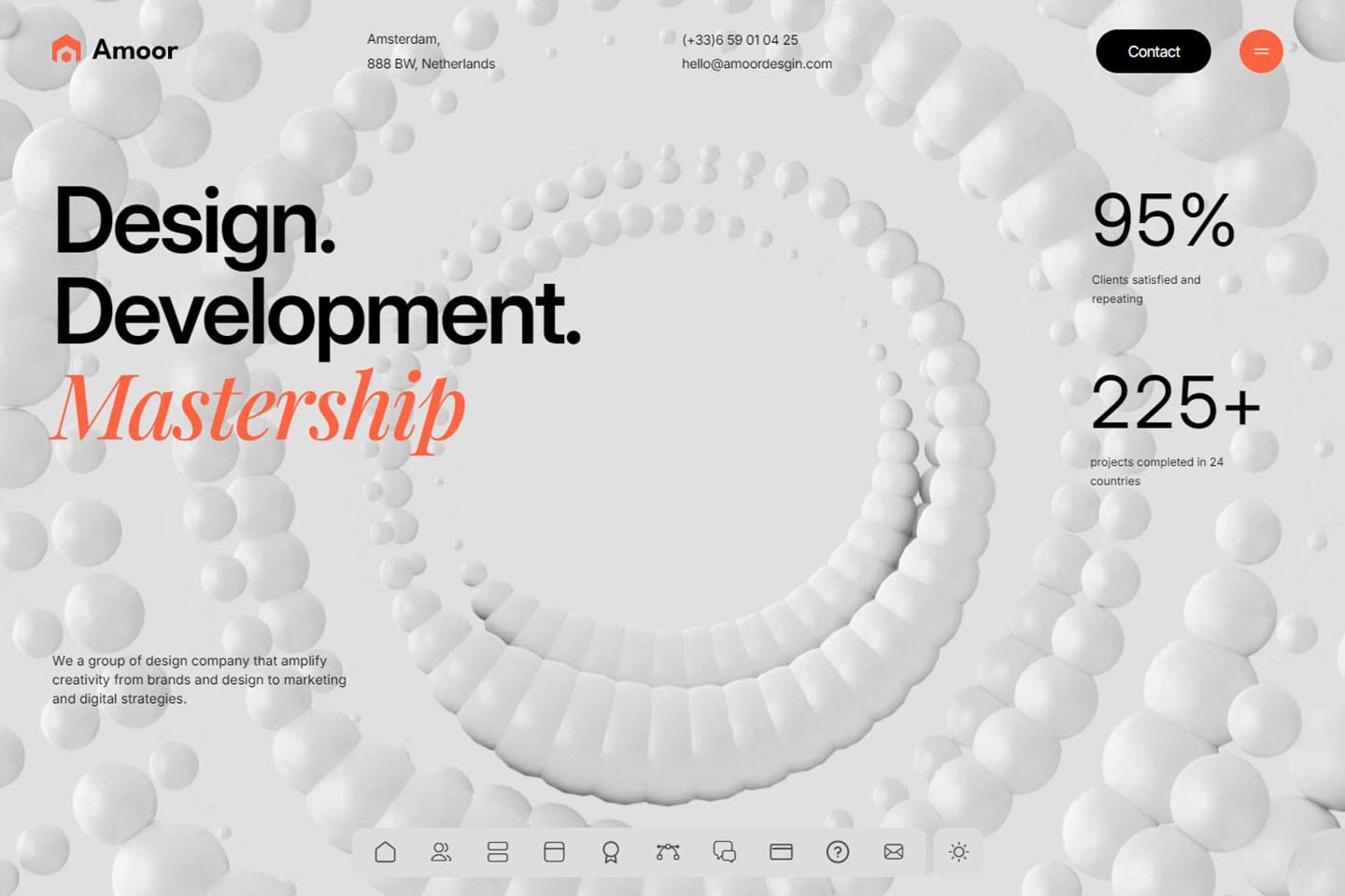 Demos Document Supports Purchase Now Amoor - Creative Agency & Portfolio Theme Main Demo Bouncing Spheres Solid Background